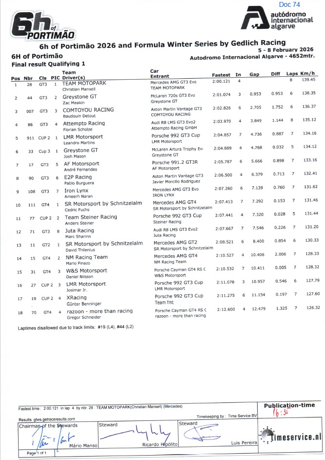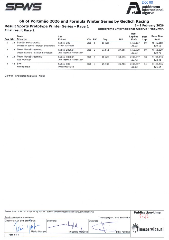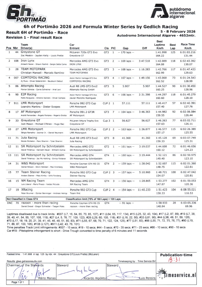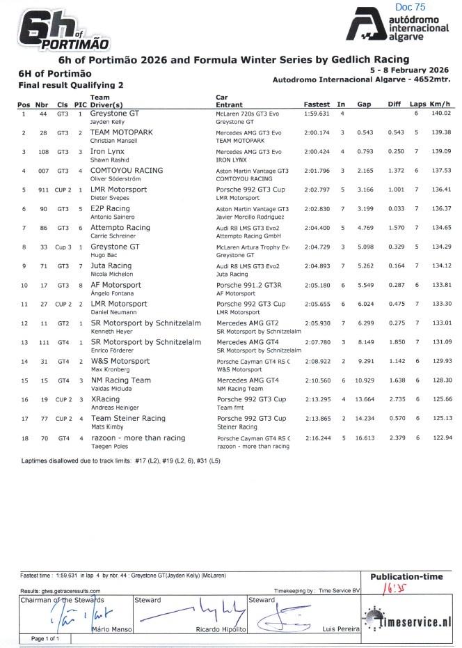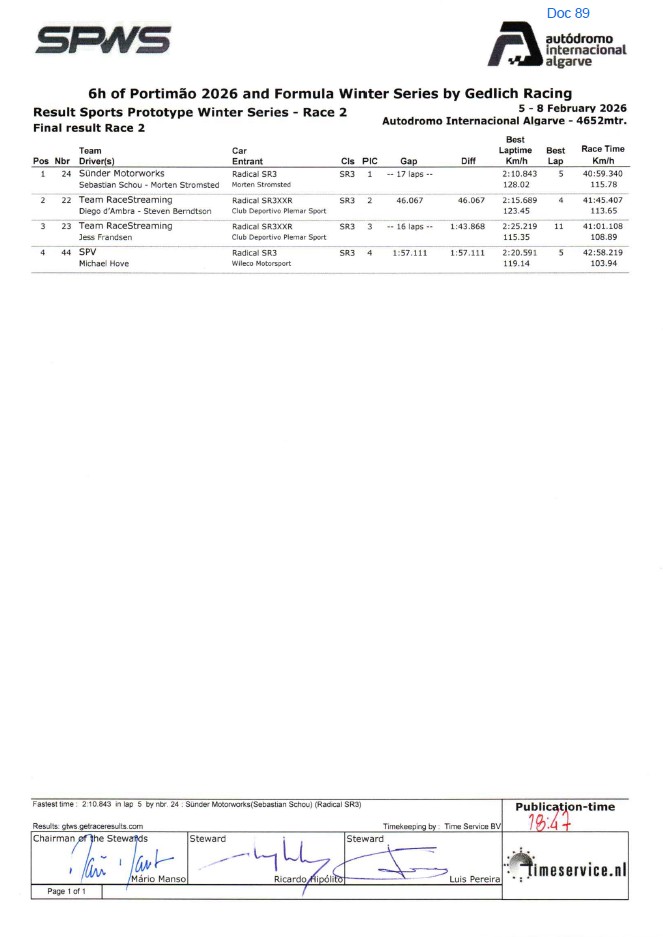 6h Winter Series - Portimão 6H Portimão Final Result per class 6H Portimão Sports Prototype Race 1 6H Portimão Qualify 2 Final Result 6H Portimão Combined Qualification 6H Portimão Sports Prototype Race 2 6H Portimão Final Result per class 2 6H Portimão Qualify 1 Final Result 6H Portimão Qualify 3 Final Result 6H Portimão Race 1 Final Result --